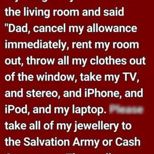 My daughter just walked into the living room and said “Dad, cancel my allowance immediately, rent my room out, throw all my clothes out of the window, take my TV,…